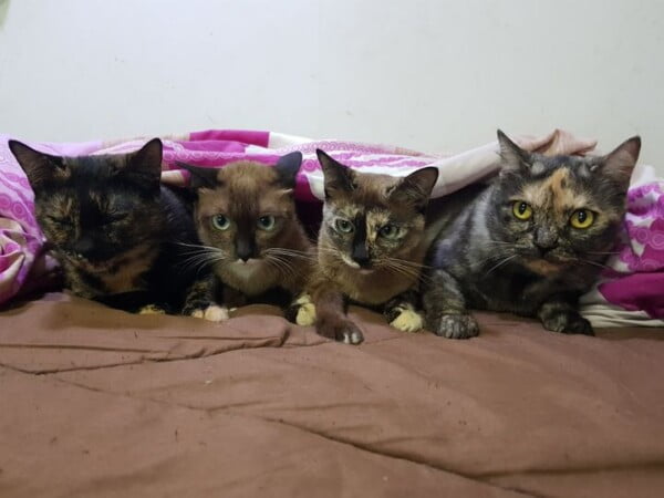 บรรยากาศวุ่นวายของแมวน้อยทั้งสี่ จะถ่ายรูปก็ไม่เคยอยู่นิ่งกันเลย