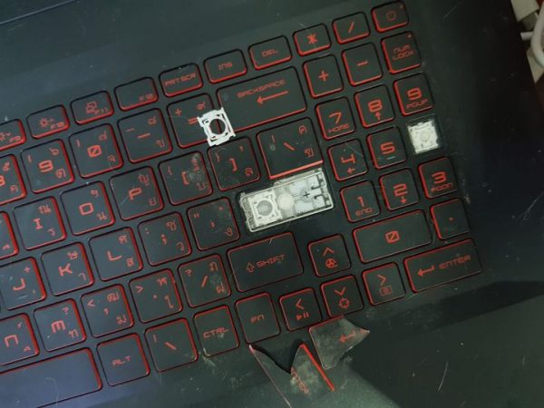 โน้ตบุ๊กคอมพิวเตอร์ที่ใช้ทำงาน พ่อทองมีตั้งไว้ในห้องสาว ๆ ปรกติจะพับจอ แต่วันนี้