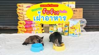 เวลามีอาหารมาส่ง แก๊งแมวก็จะมาช่วยกันเฝ้าเอาไว้พร้อมรับค่าจ้างกันหนึ่งมื้อ วันนี