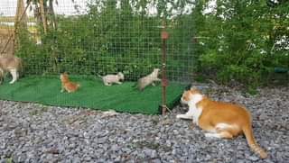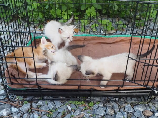 รูปบรรยากาศแมวน้อยทั้งสี่เล่นกันครับ เด็ก ๆ อยากเดินเล่นนอกกรงแล้ว พ่อทองมีต้องร