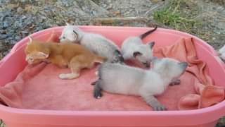แมวน้อยทั้งสี่ตาเริ่มมองเห็นได้ชัดขึ้นเรื่อย ๆ วันนี้เลยพามาชมวิวนอกบ้าน แต่แม่ป