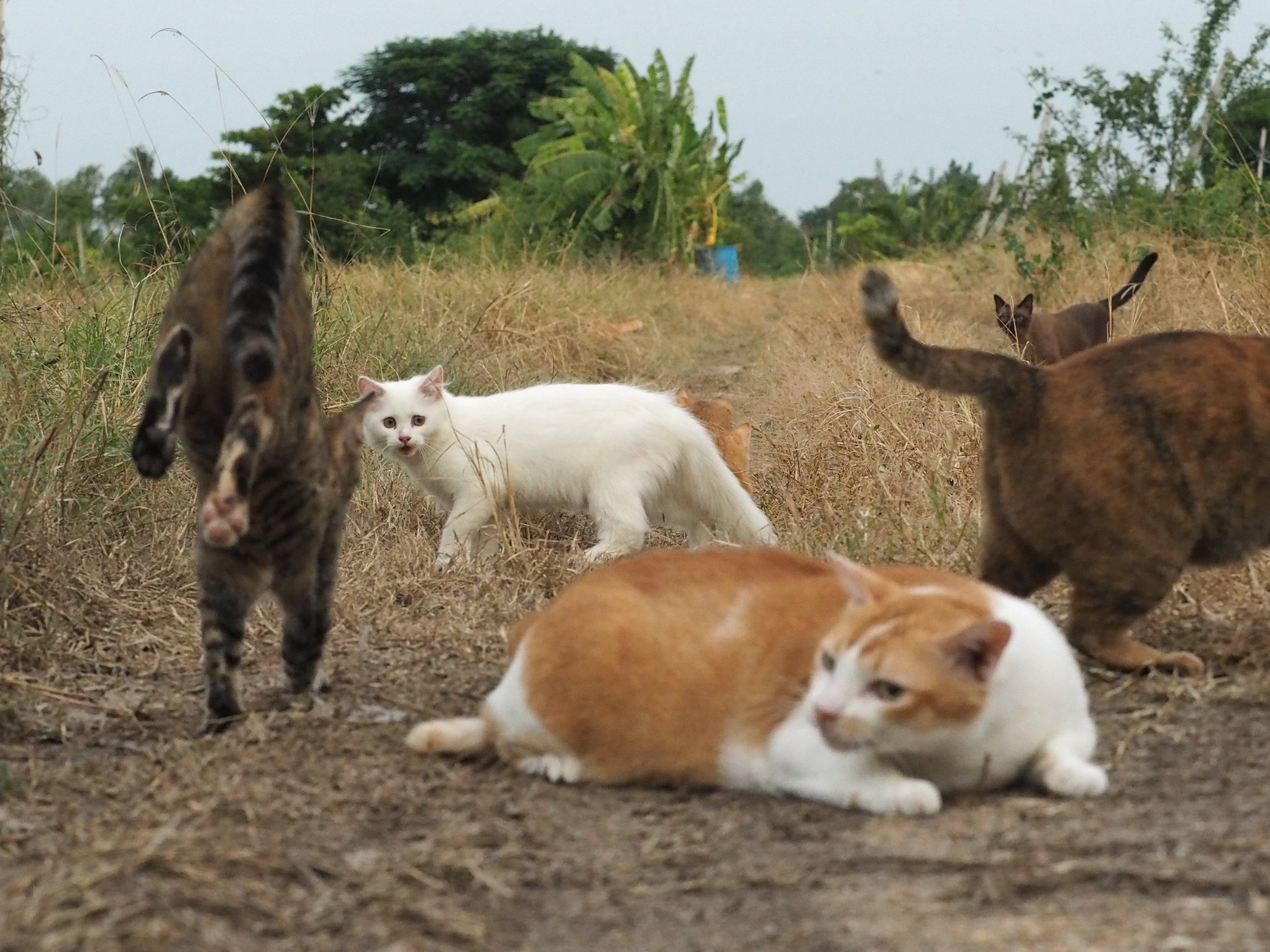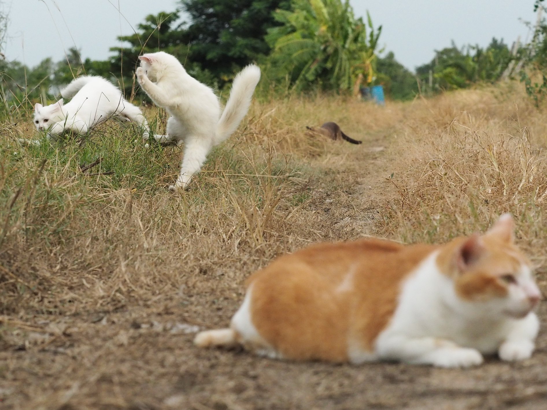 (ตอนเย็นอากาศดี พวกแก๊งแมวเด็กได้มาวิ่งเล่นกันชายคลอง มีลุงถั่วเหลืองคอยดูแล)