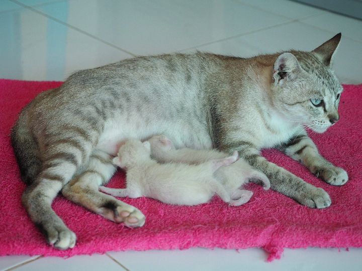 แม่ลูกอ่อน นอนเฝ้า เจ้าเหมียวน้อย
