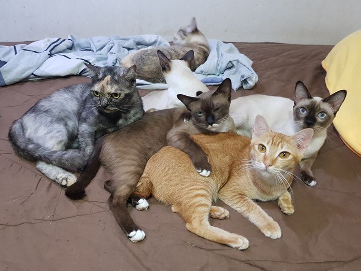 วันนี้งดกลอนหนึ่งวันครับ พ่อทองไม่สบายนิดหน่อย เด็ก ๆ ก็ไม่ได้ออกจากบ้านด้วยเพราะฝนตกทั้งวัน มีเรื่องน่าชื่นใจมาเล่าหน่อยครับ เมื่อคืนนี้พ่อทองมีท้องเสียทั้งคืน น่าจะเกิดจากอาหารไม่สะอาดที่กินไปเมื่อวานครับ รู้สึกปวดบิดในท้อง พอเข้าห้องน้ำหลายรอบจนหมดแรงก็กลับมานอน ทีนี้ก็ดันจับไข้ซ้ำไปอีก รู้สึกหนาวสั่นไปหมด พ่อทองมีจึงปิดแอร์ปิดพัดลม คว้าผ้าห่มมาห่อตัวเองเป็นมัมมี่ อยากจะลุกออกไปหาเสื้อผ้าหนา ๆ มาใส่แต่หนาวมากครับ จึงทนอยู่ในผ้าห่มแบบนั้น ตั้งใจว่าถ้าสักพักหนึ่งไม่ดีขึ้นจะโทรเรียกพี่สาวกับพี่เขยมาดู หลังนอนสั่นอยู่ในผ้าห่มสักพัก แก๊งสาวแสบทั้งหลาย ปรกติแล้วเรียกให้มานอนกอดด้วยก็จะเล่นตัวหนีกันหมด แต่วันนี้แปลกมากครับ มะเหมี่ยวกับลูกศิษย์พากกันมามุดผ้าห่มพ่อทองมี ขึ้นนอนบนตัวบ้าง ทับขาทับแขนอยู่รอบ ๆ เต็มไปหมด เหมือนพวกเขารู้ครับว่าพ่อทองมีหนาวสั่นอยู่ เลยรวมพลังกันมาช่วยพ่อ พ่อทองมีอุ่นขึ้นก็เลยหลับยาวถึงเช้าเลยครับ บางทีพวกเขาก็รู้มากกว่าที่เราคาดหวังครับ ความแสนรู้มักจะเจอบ่อยในหมามากกว่าแมว แมวนั้นก็แสนรู้มากแต่ไม่ค่อยแสดงออกเท่านั้นเองครับ มะเหมี่ยวติดทัณฑ์บนอยู่ แต่เพราะคุณงามความดี วันนี้เลยอภัยโทษ พรุ่งนีั้ให้วิ่งเล่นได้ปรกติ ส่วนพ่อทองมีดีขึ้นแล้วครับ เดี๋ยวถ้าไม่ดีอย่างไรก็หาหมอครับ
