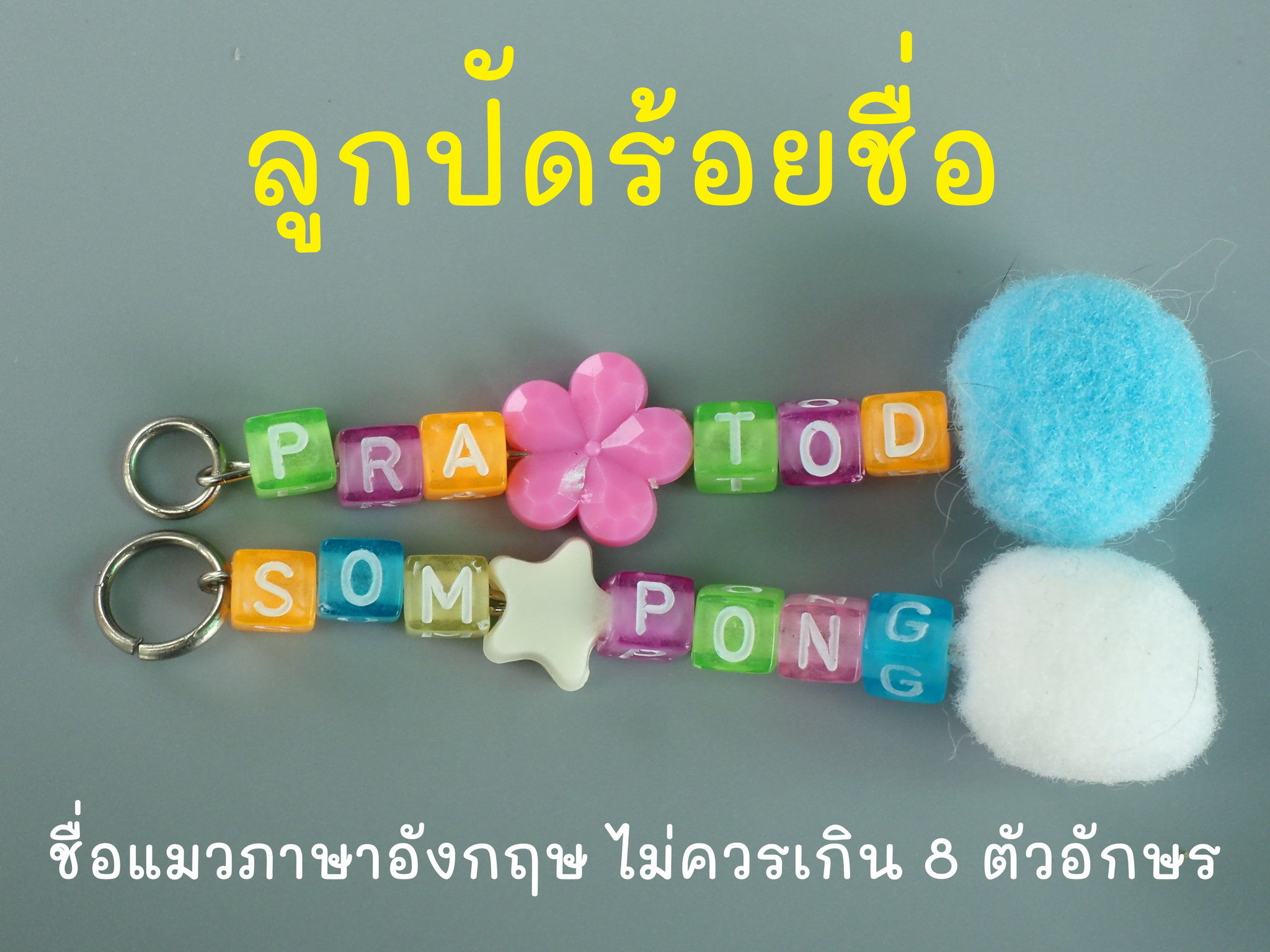 – หากต้องการเพิ่มลูกปัดร้อยเป็นชื่อแมวหรือคำที่ต้องการ เพิ่มอีก +20 บาท ครับ รวมเป็นราคา 199 บาท