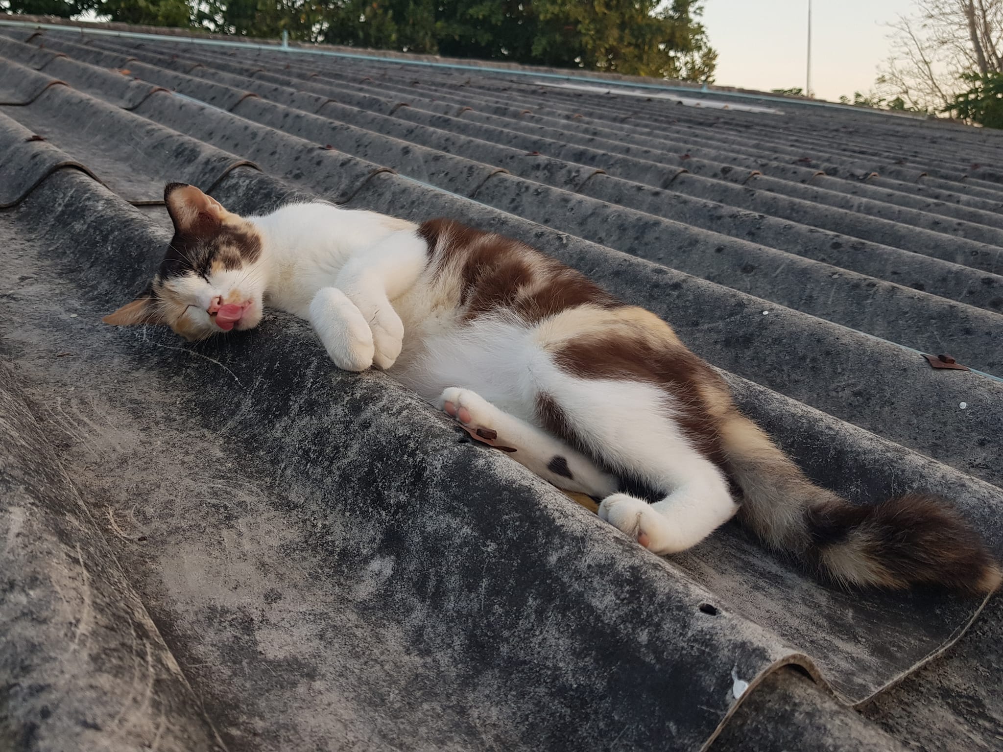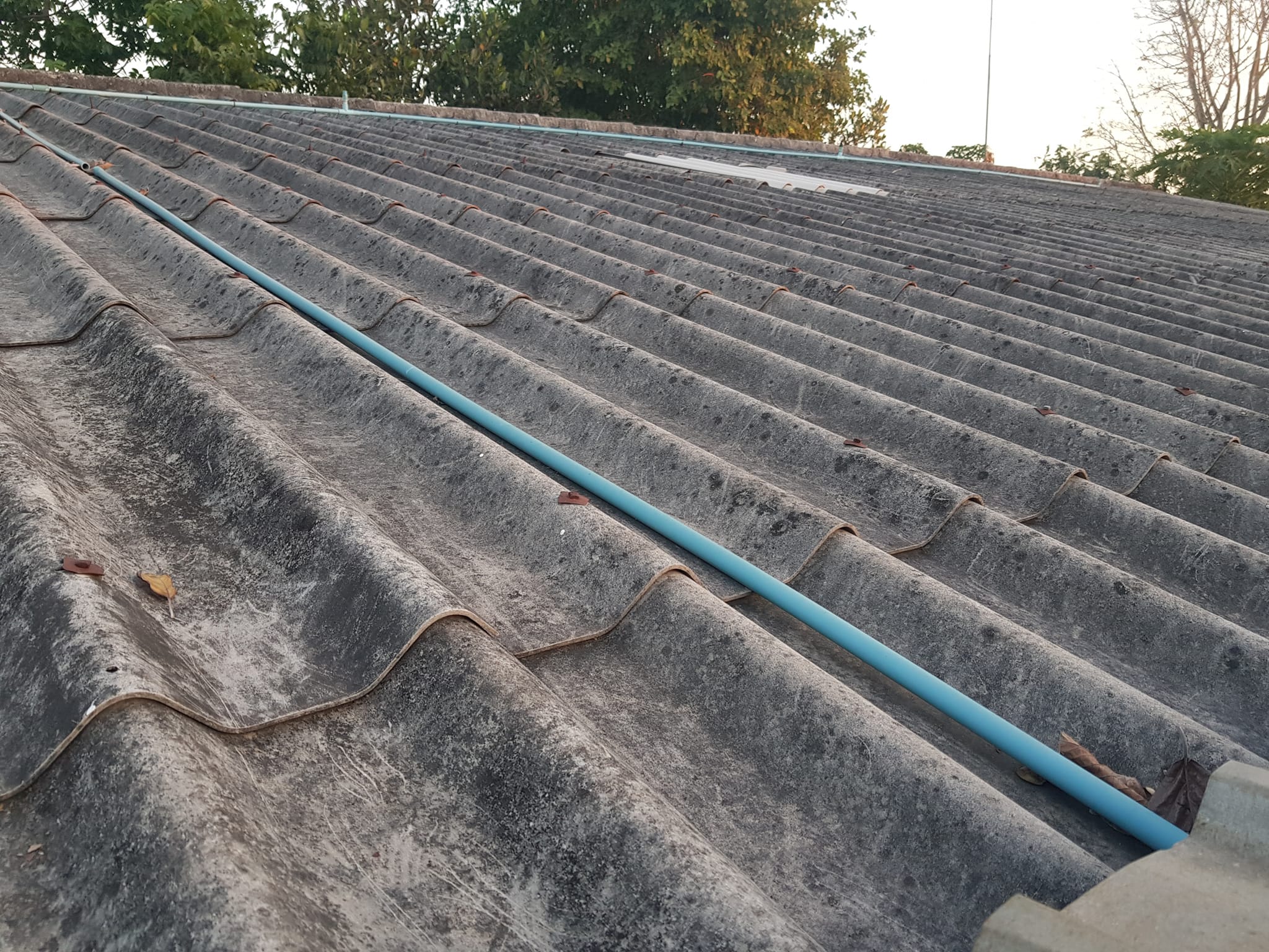 พ่อจะติดสปริงเกอร์บนหลังคาแล้วค่ะ พ่อบอกต่อไปถึงเวลาเข้าบ้านแล้วใครไม่ลงก็เปิดน