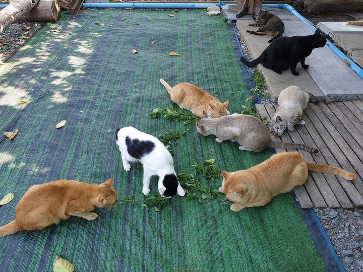 วันหยุดของคนคือตัดหญ้า จัดเก็บรอบบ้าน เตรียมทำซาฟารีไปทีละเล็กทีละน้อย ส่วนวันหยุดของแมวก็ปาร์ตี้สังสรรค์กันอย่างสบายใจ