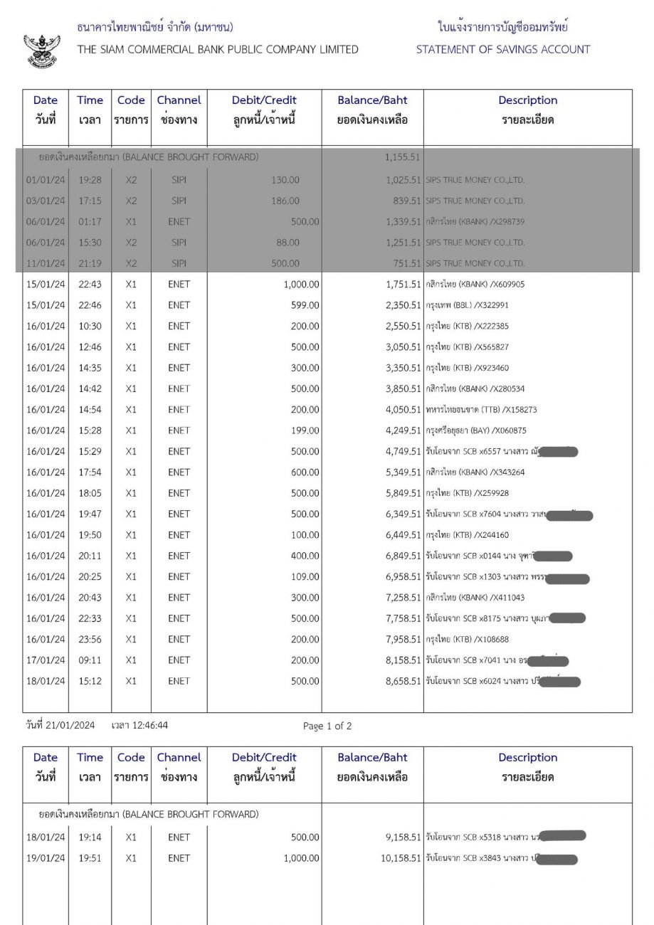 – พ่อทองมีลงสเตทเมนต์ธนาคารให้ดูเรียบร้อย แต่ลบเลขที่บัญชีกับปิดรายชื่อผู้โอนไว้ครับ