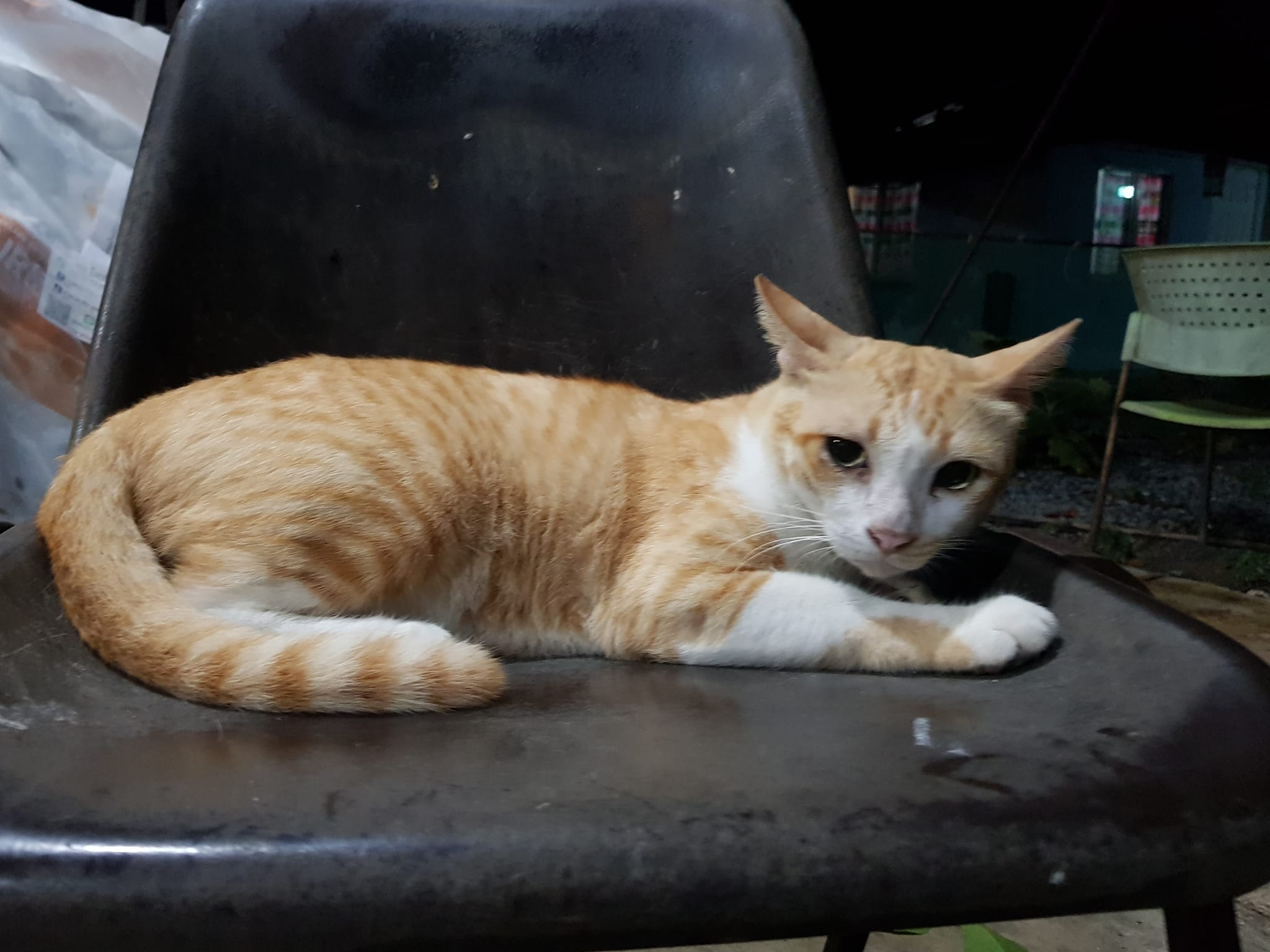 ตอนนี้ฝนซาแล้ว วันนี้ฝนตกและลมแรงมากเป็นพายุเลยครับ แรงขนาดกระเบื้องหลังคา (โรงเก็บของ) ปลิวลงมาแตกหลายแผ่น แมวที่กำลังเดินเล่นก็วิ่งเข้าบ้านกันหมด (ยกเว้นโนอึล ซึ่งโดนรวบเข้าบ้านเรียบร้อย) เมื่อสักพักขณะกำลังเดินสำรวจข้าวของ เมื่อหันมาอีกทีก็เจอ #สมปอง ทำตาละห้อยและร้องแง้ว ๆ โวยวาย พ่อทองมีนั้นลืมสมปองไปเลยครับ เพราะแมวอื่นวิ่งเข้าบ้านหมดก็ปิดประตู สมปองเลยเข้าบ้านไม่ได้ คงจะน้อยใจน่าดู เลยต้องจับมาอุ้มและขอโทษกันเรียบร้อย ช่วงเย็นทุกวัน สมปองกับดำรงจะได้วิ่งเล่นพร้อมกับแก๊งสาว ๆ พอถึงเวลา สมปองจะเดินกลับเข้าบ้าน ส่วนดำรงจะลีลาหน่อย จะรอให้อุ้มเข้า แต่วันนี้ผิดคาดครับ ตอนพายุมา ดำรง “บิน” เข้าบ้านเองก่อนใคร ใช้เวลาเพียงเสี้ยววินาทีเองครับ