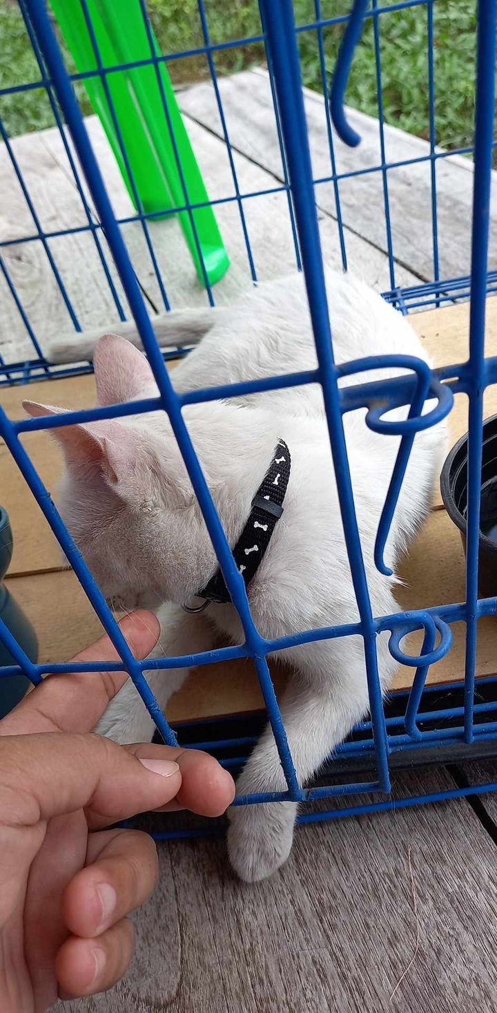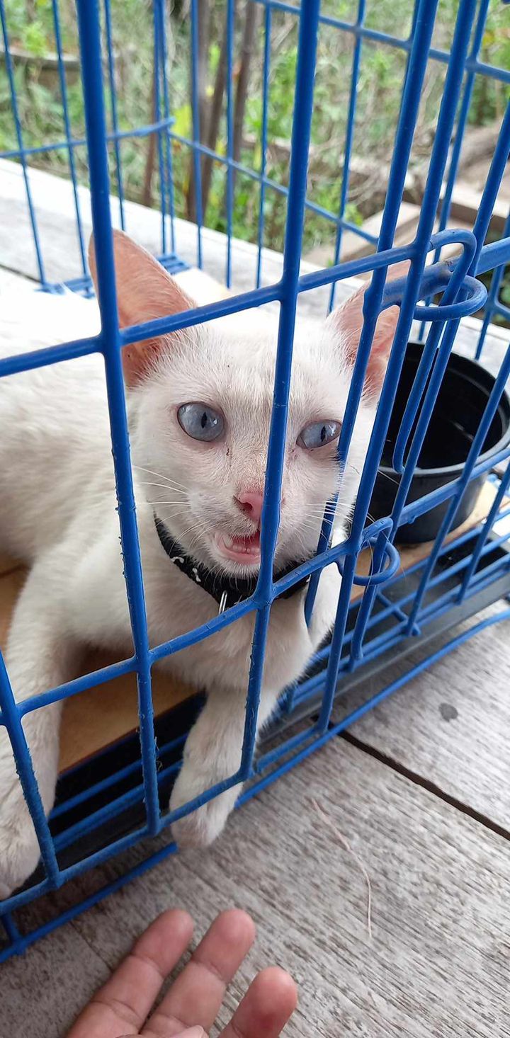 พบน้องแมวหลงมา สีขาว เพศเมีย ตาสีฟ้า ใส่ปลอกคอสีดำลายกระดูก พบน้องในซอยราษฎร์พัฒนา 15 แยก 1 เขตสะพานสูง กทม. หากใครคุ้นหน้าคุ้นตาว่าลูกสาวบ้านไหน หรือมีท่านใดที่แมวหายจากบ้านหรือพลัดหลงกัน ติดต่อได้เลยครั