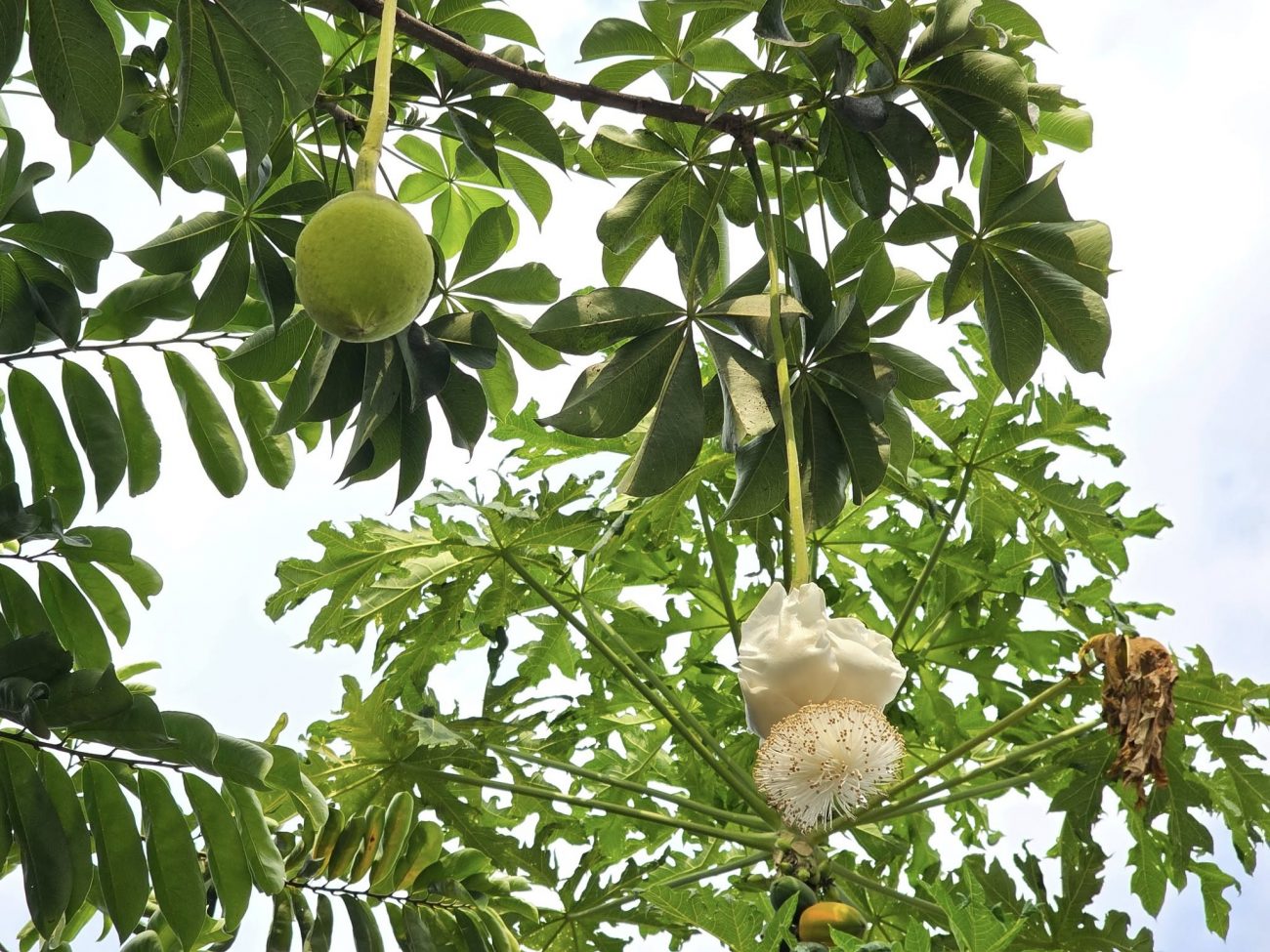 มีดอกไม้มาอวดครับ เป็นดอกของต้น “เบาบับ” หลายคนอาจไม่เคยเห็น ซึ่งพ่อทองมีก็เพิ่ง โพสต์เมื่อ 03 พ.ค. 2025 - 13:21น. ใน โพสต์ทั่วไป 0 คอมเมนต์ มีดอกไม้มาอวดครับ เป็นดอกของต้น “เบาบับ” หลายคนอาจไม่เคยเห็น ซึ่งพ่อทองมีก็เพิ่งได้เห็นครั้งแรกเช่นกันครับ เบาบับ (Adansonia Digitata) เป็นไม้ยืนต้นจากแอฟริกา เดี๋ยวนี้มีเพาะพันธุ์ขายทั่วไปในไทย เป็นต้นไม้สารพัดประโยชน์ กินได้ ใช้ประดับตกแต่งสถานที่ ลำต้นใหญ่ สวย อายุยืนมาก ให้ร่มเงาได้เป็นอย่างดีครับ ต้นเบาบับของพ่อทองมีปลูกไว้ได้ประมาณ 4 ปี แต่โตไวดีและกลายเป็นต้นไม้ที่มีลำต้นใหญ่สุดในพื้นที่ (รองมาคือต้นมะกอกป่า อายุ 13 ปี) นอกจากจะแผ่กิ่งก้านสาขาให้ร่มกับหล้งคาสร้างความร่มรื่นแล้ว ยังกลายเป็นฐานทัพลับและช่องทางธรรมชาติที่แก๊งแมวตัวแสบปีนหลบหนีไปซ่อนตัวเวลาเรียกเข้าบ้านเป็นอย่างดีด้วยครับ รอบชายคาบ้าน ยังมีต้นไม้อีกหลายชนิดที่พ่อทองมีปลูกไว้ โดยเน้นเป็นต้นไม้หายากหน่อย (ต้นไม้ทั่วไปมีเยอะแล้ว เช่นมะม่วง ขนุน) ต้องมีผลที่คนกินได้ด้วย และที่สำคัญเป็นร่มเงาให้กับบ้านและกรงซาฟารีแมวที่กำลังจะทำครับ (ซาฟารีแมวคือกรงขนาดใหญ่เชื่อมต่อจากตัวบ้าน นึกภาพก็คล้าย ๆ สวนนก มีตาข่ายใหญ่ครอบคลุมพื้นที่ ข้างในก็จะมีสนามหญ้า สวนดอกไม้ น้ำตก เป็นพื้นที่ปิดจำลองธรรมชาติ ให้แก๊งแมวได้เดินเข้าออกไปวิ่งเล่น ไปนอนเล่น กันได้เองตามสะดวกกันครับ พ่อทองมีอยากเลี้ยงแมวแบบระบบปิด แต่ก็ไม่อยากกักขังพวกเขาให้อยู่แต่ในบ้านทั้งชีวิตนั่นเอง) จากนี้คงต้องรอดูครับ ต้นเบาบับออกดอกตูม ๆ จนบานสวยงามแล้ว ต่อไปหากกลายเป็นฝักติดผล พ่อทองมีจะถ่ายมาอวดกันอีกรอบครับ ดูโพสต์ในเฟซบุ๊กShare พิมพ์ 0 Likes