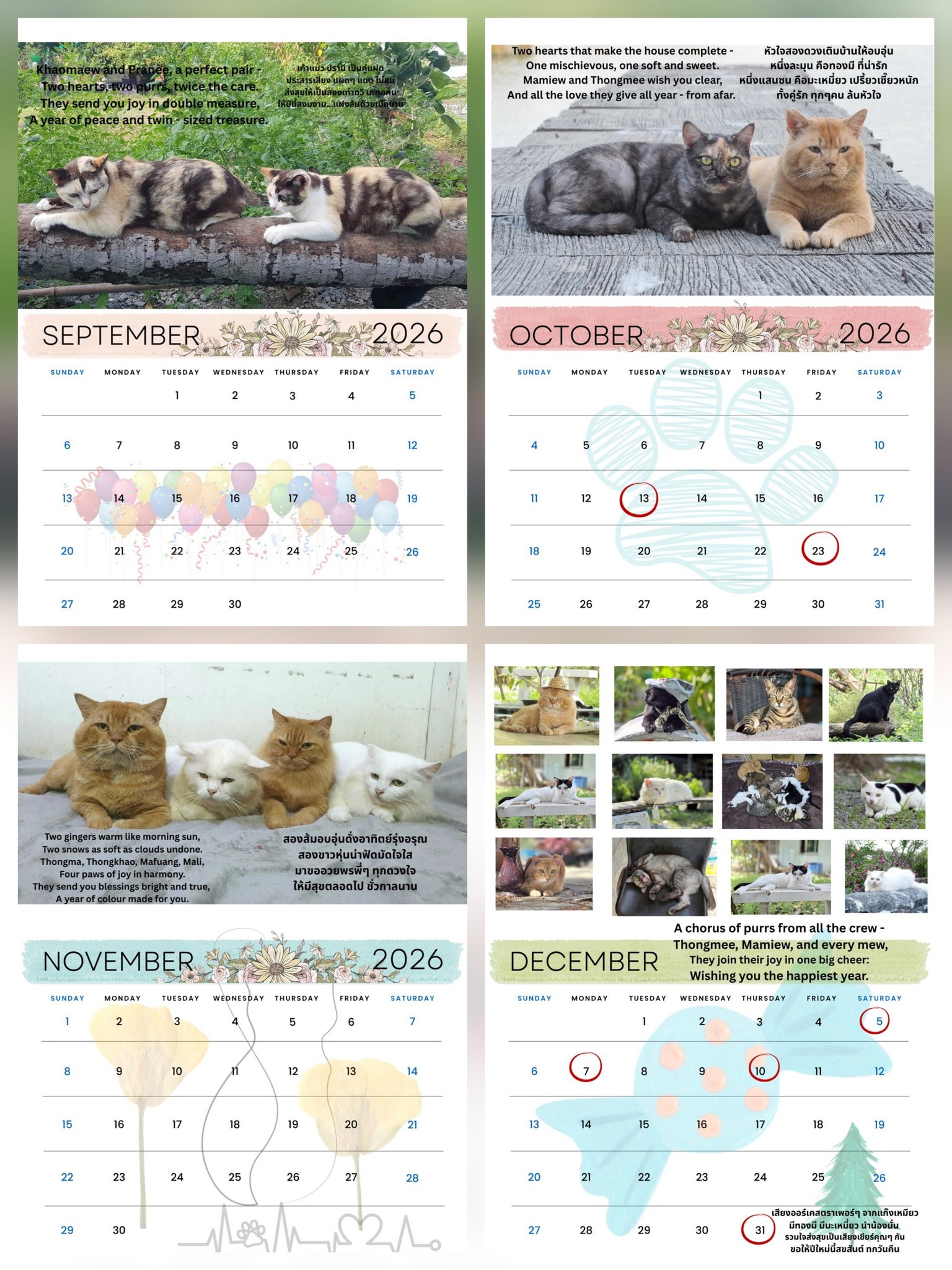 ทุกท่านครับ #ปฏิทินปีใหม่2569 เปิดให้สั่งแล้วครับ ราคา 299 บาท จัดส่งฟรีครับ ปฏิทินจัดทำจำนวนจำกัดตามยอดสั่งจอง เปิดสั่งจองภายใน 15 ธ.ค.นี้เท่านั้นครับ ปฏิทินนี้เป็นแบบตั้งโต๊ะ ขนาด 6 × 8 นิ้ว สั่งพิมพ์ด้วยกระดาษคุณภาพอย่างดี ใช้รูปจริงของสมาชิกแมวในครอบครัวแมวทองมี ลงครบทั้ง 12 เดือน พร้อมวันหยุดสำคัญ และคำอวยพรไทย-อังกฤษ เหมาะสำหรับติดบ้าน ที่ทำงาน หรือฝากเพื่อนฝูงญาติมิตรและคนในครอบครัวครับ ประเภท: ปฏิทินชนิดตั้งโต๊ะ ขนาด: 6 × 8 นิ้ว ราคา: ชุดละ 299 บาท จัดส่งฟรี เปิดสั่ง: สั่งจองภายใน 15 ธ.ค. นี้ กำหนดส่ง: พร้อมส่งก่อนสิ้นเดือนนี้ ปฎิทินนี้จัดทำจำนวนจำกัด จัดทำเพื่อหารายได้เป็นหาค่าหมอ ค่าวัคซีนของแมวในบ้านกว่า 50 ชีวิต ฝากทุกท่านอุดหนุนช่วยเหลือเด็ก ๆ กันเยอะ ๆ นะครับ สนใจสั่งจอง ทักทางข้อความเพจได้เลยครับ ฝากแชร์และบอกต่อด้วยครับ ขอบคุณครับ