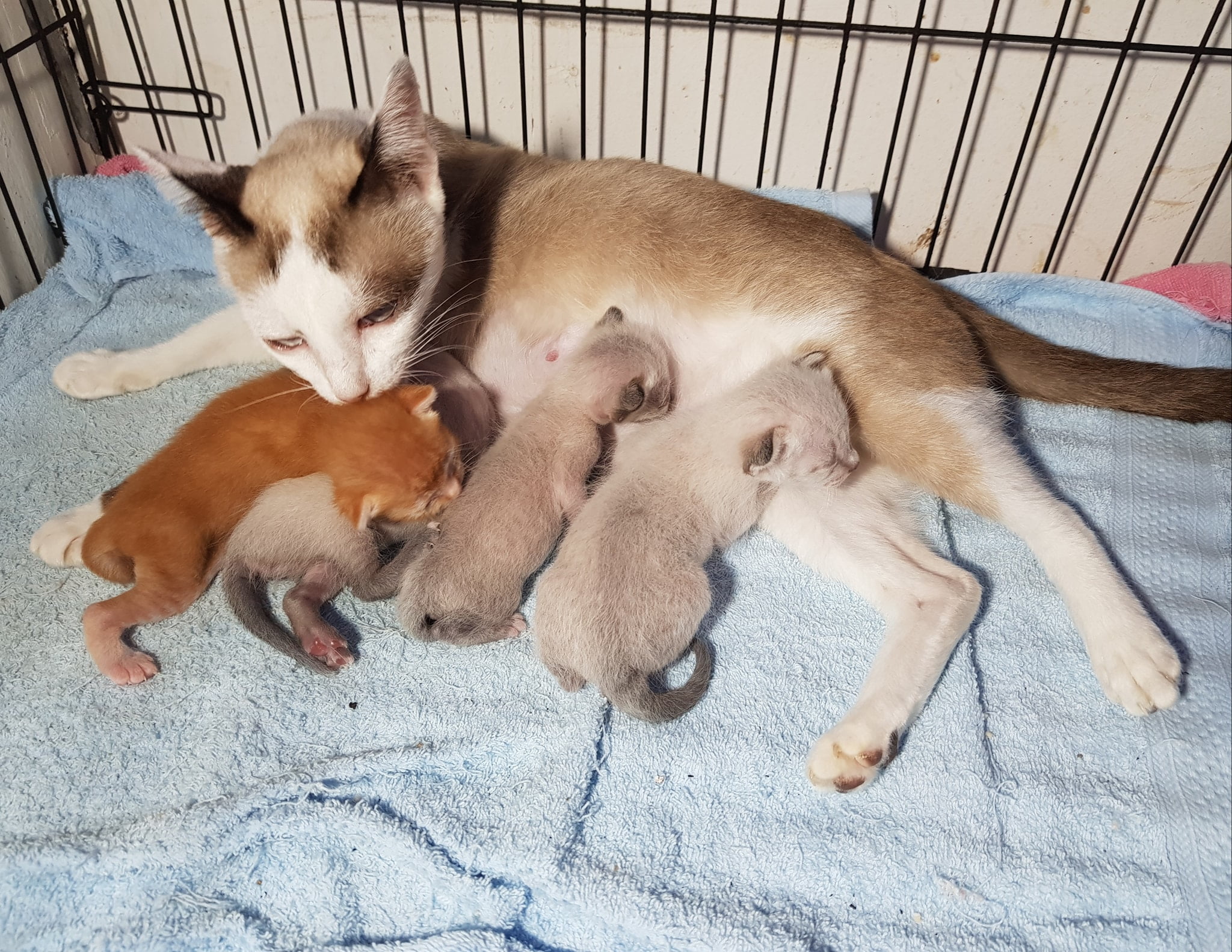 แมวน้อยทั้งสี่มาแล้ว วันนี้ครบ 15 วันครับ โพสต์เมื่อ 13 ธ.ค. 2021 - 21:39น. ใน โพสต์ทั่วไป 0 คอมเมนต์ แมวน้อยทั้งสี่มาแล้ว วันนี้ครบ 15 วันครับ สุขภาพของแม่ปลาทอดและลูก ๆ ยังแข็งแรงกันดี เด็ก ๆ เริ่มคลานกันมากขึ้น เริ่มเสียงดังมากขึ้น รอวันให้โตกันอีกหน่อยก็จะได้ออกนอกกรงกันครับ คงจะสนุกสนานน่าดูครับ เด็ก ๆ ตัวขาวก็ไม่ขาวกันแล้ว กลายเป็นเด็กเทาแทน แขนขาหูจมูกก็เริ่มเข้มขึ้น ส่วนส้มน้อยยังเหมือนเดิมครับ สำหรับแมวสีเทา ถ้าเทาล้วนเลยหรือแบบแมวสีสวาด ก็เคยคิดอยากมีในบ้านสักตัวครับเพราะ พ่อทองมีไม่เคยมีแมวสีนี้เลย เคยเกือบมีตอนมะเหมี่ยวเกิด แต่แถมลายกับสีอื่นมาด้วยครับ เด็กเทาทั้งสามโตขึ้นมาอาจจะคล้ายวิเชียรมาศ วิเชียรบุรี หรือสุพรรณบุรี จะสีไหนก็ไม่สำคัญ แมวทุกตัวน่ารักเหมือนกันหมดครับ ดูโพสต์ในเฟซบุ๊กShare พิมพ์ 0 Likes