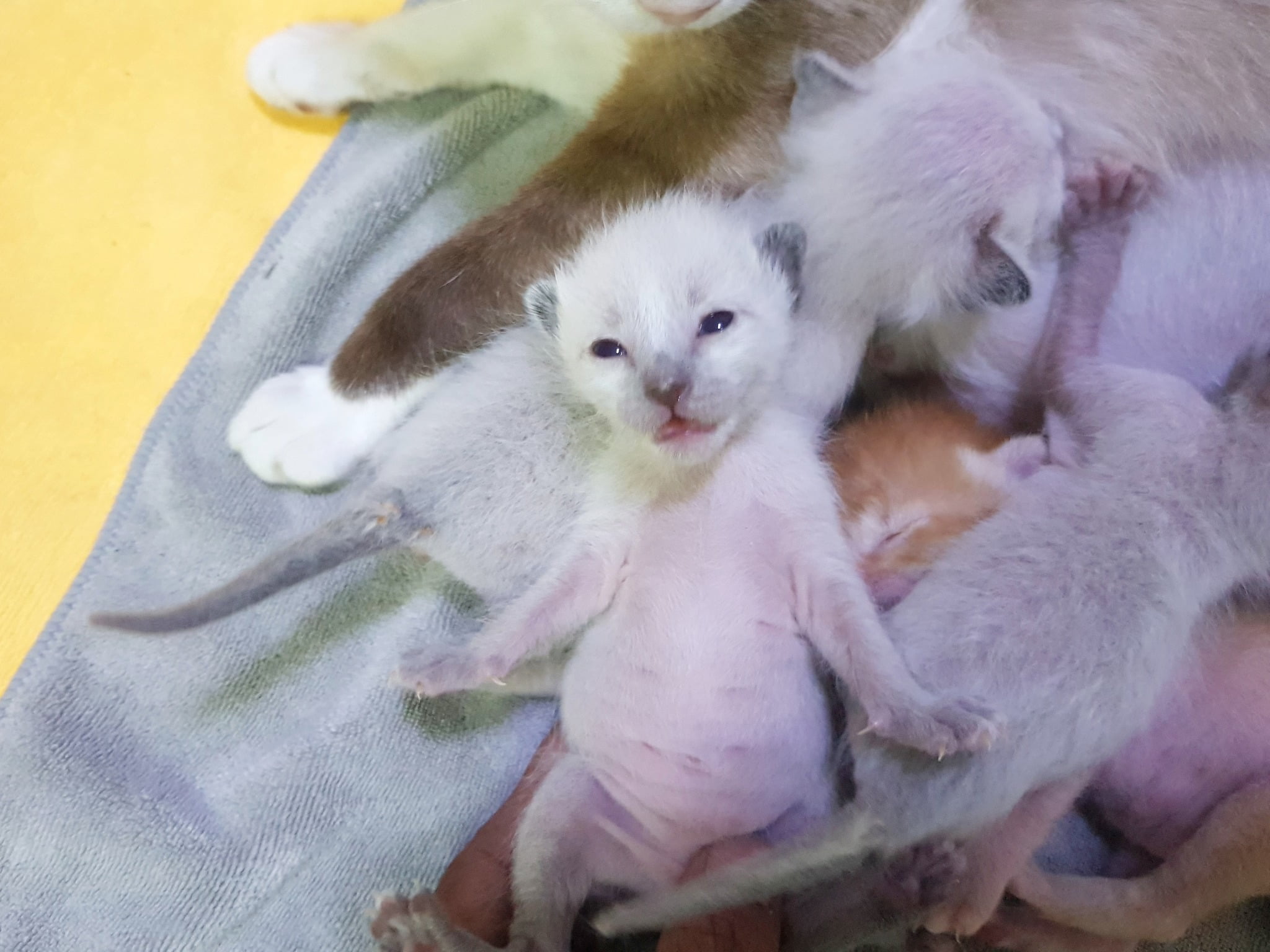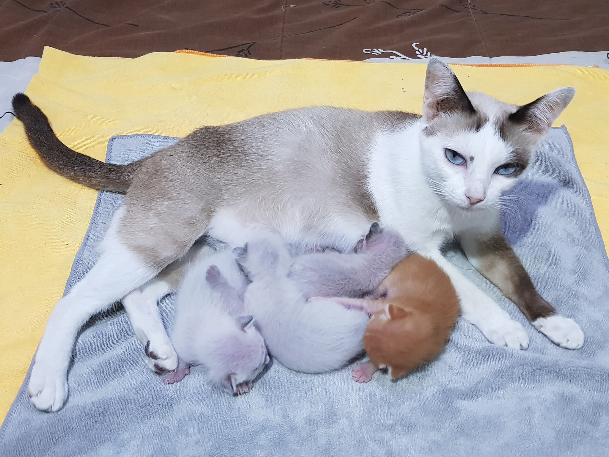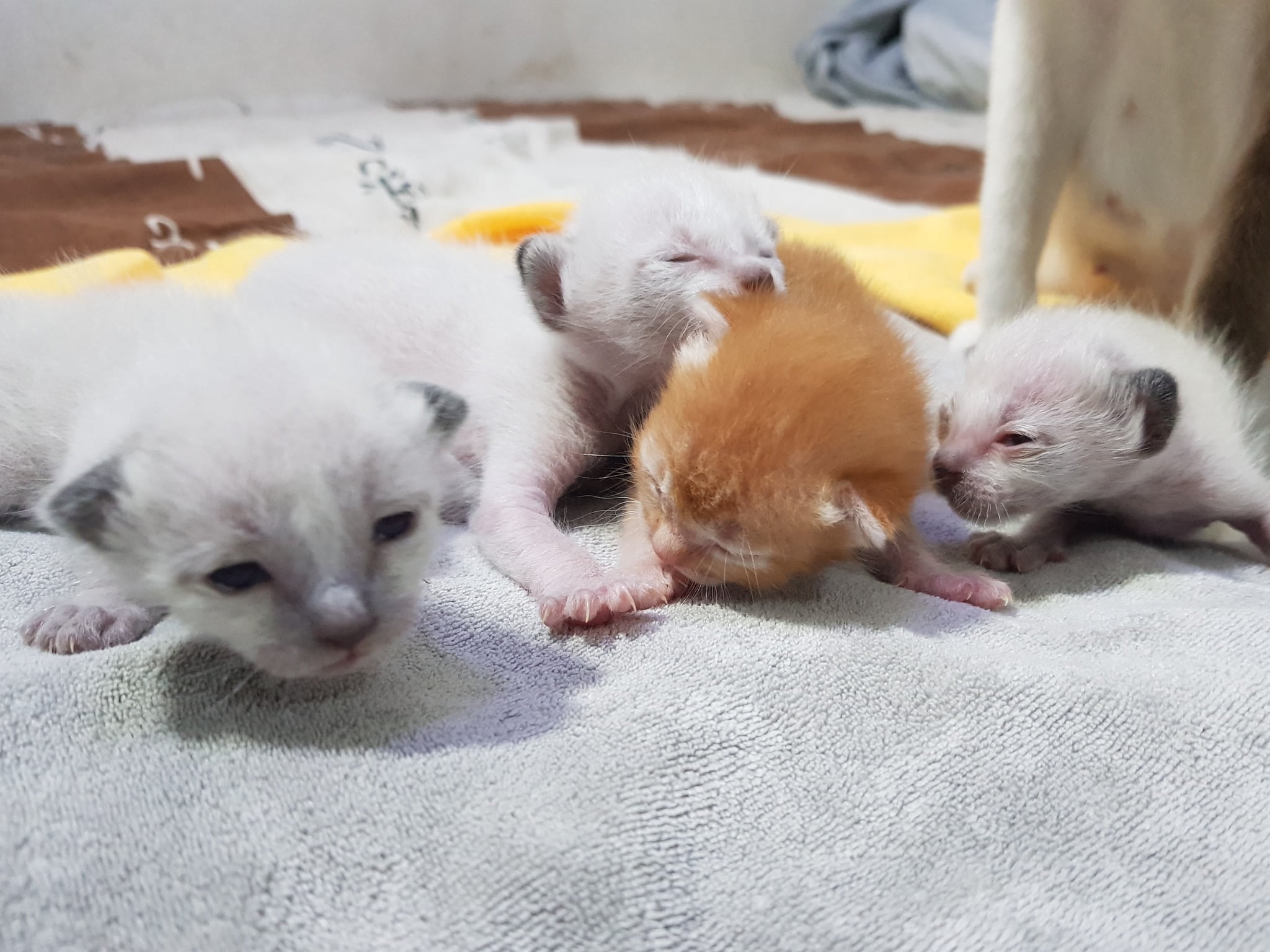 #แมวน้อยทั้งสี่ มาแล้ว โพสต์เมื่อ 10 ธ.ค. 2021 - 21:41น. ใน โพสต์ทั่วไป 0 คอมเมนต์ #แมวน้อยทั้งสี่ มาแล้ว เข้าวันที่ 12 แมวน้อยทั้งสี่ก็ลืมตากันครบครับ แต่ตายังตี่กันอยู่เนื่องจากไม่ต้องมองอะไรกันมาก ใช้วิธีคลานกับมุดหานมแม่เหมือนเดิมครับ วันนี้พาแม่ลูกออกจากกรงมา อยากจะลองถ่ายรูปให้เห็นชัด ๆ สักหน่อย แต่เด็ก ๆ อยู่ไม่นิ่งเลยครับ เลยได้รูปบรรยากาศการคลานเสียส่วนใหญ่ แม่ #ปลาทอด ไม่ได้ออกจากบ้าน 12 วันแล้ว พรุ่งนี้ช่วงกลางวันมีแดดอุ่น ๆ จะพาเธอออกไปสูดอากาศเสียหน่อยครับ และอาจจะพาเด็ก ๆ ไปรับไอแดดสักนิดพร้อมแม่ด้วย ปรกติแมวแม่ลูกอ่อนก็จะชอบอยู่ที่มิดชิด ไม่ต้องสว่างมาก ห้องที่แม่ปลาทอดกับลูกอยู่ พ่อทองมีก็เปิดไฟแค่พอดี ไม่สว่างจนเกินไป รวมทั้งกรงของเธอก็มีผ้าคลุมบางส่วนเพื่อให้ความเป็นส่วนตัว แม่กับลูกจะได้รู้สึกปลอดภัยและไม่เครียดครับ (มีแก๊งสาว ๆ ไปเดินส่องดูหลานกันอยู่บ้าง แต่ไว้ใจได้ ไม่ทำอะไรเด็ก ๆ ครับ) เด็กขาวทั้งสามก็เริ่มหูดำ จมูกดำ หางดำ แขนขาดำ ขนเริ่มเปลี่ยนเป็นสีเทา รอลุ้นว่าโตขึ้นจะออกมาแนวไหนครับ ส่วนส้มน้อยยังส้มทั้งตัวเหมือนเดิม มีใบหน้าสีขาวปน สุขภาพของเด็กน้อยทั้งสี่รวมทั้งแม่ปลาทอดก็ดูแข็งแรงดีกันทั้งหมดครับ ดูโพสต์ในเฟซบุ๊กShare พิมพ์ 0 Likes