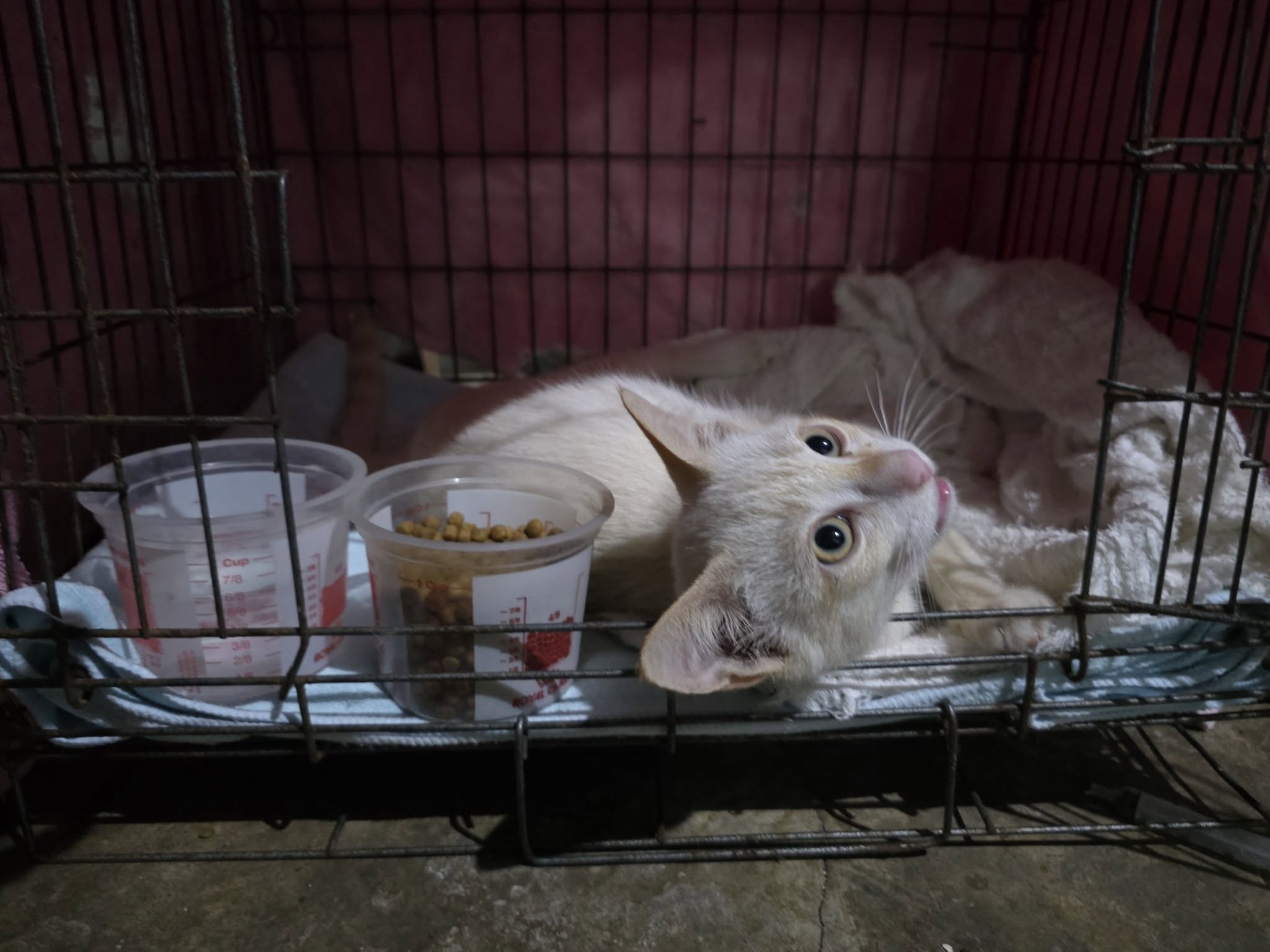 แมวหมาต้องการความช่วยเหลือ ตอนนี้ตีสี่แล้ว ยังจับใครเพิ่มอีกไม่ได้นะครับ จับได้แค่เด็กชายสีนวลตัวเดียวเหมือนเดิม เจ้าส้มนั้นขี้กลัวจึงยังตัวยาก หลังจากพาเจ้าสีนวลไปหลอกหล่อตั้งแต่ค่ำ เจ้าส้มก็ออกมาหา แต่พอพ่อทองมีเข้าใกล้ก็วิ่งหนีทุกครั้ง จนในที่สุดพอเริ่มดึก เจ้าสัมวิ่งหนีไปกับแม่แมว แต่เจ้าสีนวลไม่ตามไปด้วย วิ่งกลับมาหาพ่อทองมีแทน เจ้าสีนวลตอนนี้อยู่ในบ้านและปลอดภัยดีครับ สีนวลฉลาด น่ารักและเชื่องมาก พรุ่งนี้พ่อทองมีค่อยลองตามจับเจ้าส้มกับแม่แมวใหม่ครับ (แมวสามแม่ลูกนี้ ไม่ว่าจะจับใครได้บ้างก็จะหาบ้านให้ทั้งหมดนะครับ พ่อทองมีทนเห็นพวกเขาตกระกำลำบากโดยไม่ช่วยก็ทำใจไม่ได้ แต่ก็รับเลี้ยงเองไม่ได้เพราะเกินกำลังครับ)
