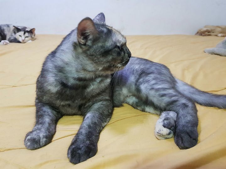 ยัยเหมี่ยวเพิ่งจะเข้าบ้าน ติดลมอยู่ริมคลอง เรียกให้เข้าบ้านก็วิ่งไปแอบ พอมานั่งรอก็ออกมาโผล่หน้า พอไล่จับก็ไปแอบซ่อนอีก เป็นแบบนี้หลายรอบครับ