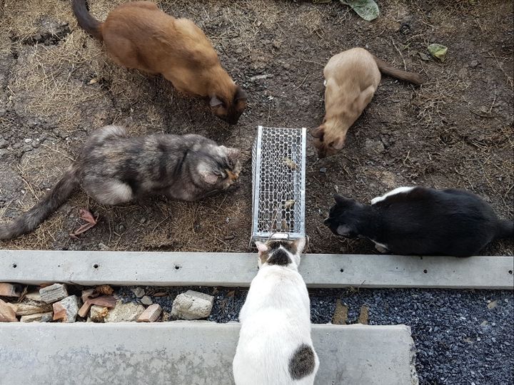 พ่อทองมีได้พาหนูไปปล่อยเรียบร้อยครับ หลายวันก่อน หนูตัวนี้อพยพมาเพื่อหาของกินและอาศัยหลบซ่อนอยู่ช่องใต้หลังคา ทำให้แก๊งแมวออกตามหาตัวอยู่หลายวัน พ่อทองมีจำเป็นต้องหาวิธีจับไปปล่อย ซึ่งก็คือใช้กรงดักและหนูไม่มีอันตรายใดใด วิธีการนี้ดีสุดแล้วครับ เพราะใช้อุปกรณ์อื่น หนูจะตาย หรือทรมานมาก สาเหตุทึ่ปล่อยคือ – ให้หนูตัวนี้อยู่บ้านไม่ได้ครับ หนูไม่ใช่สัตว์เลี้ยง อาจเป็นพาหะสู่คนหรือแมว และทำความเสียหายให้ข้าวของในบ้าน – แม้จะสงสารหนู แต่หาบ้านให้หนู คงทำไม่ได้แน่ครับ – แก๊งแมวรวมพลกันทุกวันบนหลังคา ต้องตามตัวกันเหนื่อยทุกวันครับ การเอาไปปล่อยเขาอาจขยายพันธุ์ ก็ปล่อยให้เป็นตามวิถีธรรมชาติของเขาไปครับ แต่มาบ้านนี้จะไม่ฆ่าทิ้งเขาก็มีชีวิตเหมือนกับเรา เล่าสู่กันฟังเฉย ๆ นะครับ เผื่อจะมีบางท่านคิดว่าพ่อทองมีจะจับหนูย่างกินกับลูก ๆ ครับ