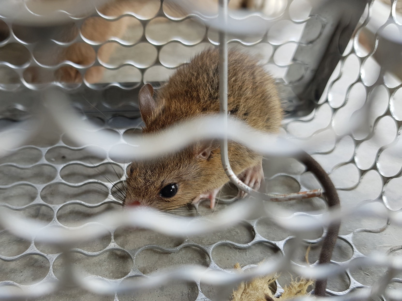 สงครามแมวจบแล้วครับ จับข้าศึกได้แล้ว เมื่อวานพ่อทองมีออกไปหากรงดักหนูมา ตอนดึกก็หั่นหมูชิ้นเล็ก ๆ เป็นเหยื่อล่อใส่ในกรงแล้วตั้งไว้หลังครัว พอตื่นเช้ามาก็เจอเจ้าหนูตัวแสบ ซึ่งตัวนิดเดียว ติดอยู่ในกรงนั่นเองครับ สาเหตุที่ใช้กรงดักแบบนี้เพราะเมื่อหนูเข้าไปกัดอาหารที่ล่อไว้ สลักก็จะขยับ ฝากรงก็จะปิด เปิดออกเองไม่ได้ หนูจะติดอยู่ข้างในแต่ไม่เป็นอันตรายครับ ส่วนกับดักแบบอื่นหรือกาวดักหนู ไม่อยากใช้เพราะหนูจะตาย หนูตัวนี้ เดี๋ยวจะพาไปปล่อยตามป่ารกไกล ๆ ห่างบ้านคนจะได้ไม่รบกวนใครครับ ส่วนกองทัพของเช่อร์เหมี่ยว ถ้ายังมีใครขึ้นไประดมพลบนหลังคา วันนี้ต้องเจอก้านมะยมครับ!