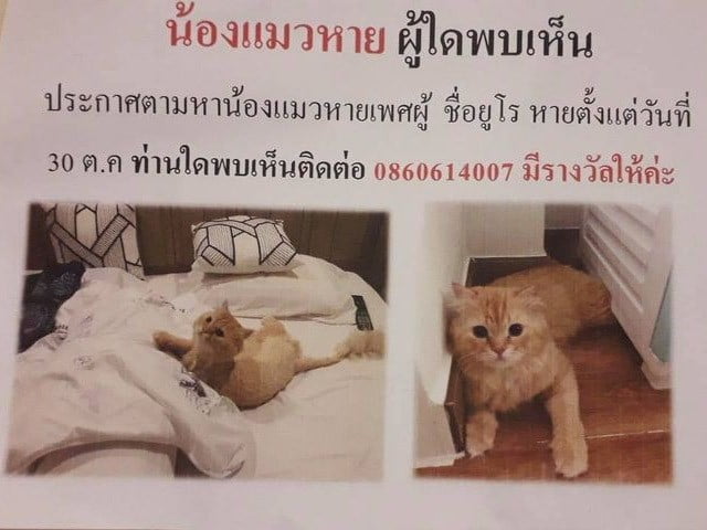 #แมวหาย โพสต์เมื่อ 16 ธ.ค. 2020 - 16:55น. ใน โพสต์ทั่วไป 0 คอมเมนต์ #แมวหาย ท่านใดที่พบเห็นน้องหรือนำน้องไปดูแล ขอความกรุณาส่งน้องคืนเราด้วยนะคะ เพราะเราตามหาเขาทุกวัน เราไม่เป็นอันกินอันนอน เราเป็นห่วงน้องมาก ตามหามาตั้งแต่เดือนตุลา จนป่านนี้แล้วยังไม่มีข่าวคืบหน้าของน้องเลย ขอความกรุณาผู้ที่มีจิตเมตตาและใจบุญช่วยด้วยนะคะท่านใดมีเบาะแสหรือเจอน้อง ดูแลน้องไว้ เราขอความกรุณานะคะ เรามีรางวัลให้ค่ะ – น้องแมวหายออกจากบ้านวันที่ 30 ตุลาคม 2563 – หายบริเวณหมู่บ้านเด่นชัยพลัส ซอยมังกร ถนนเทพารักษ์ อำเภอแพรกษาใหม่ จังหวัดสมุทรปราการ – น้องแมวเพศผู้ สีส้ม ขนฟู ชื่อยูโร – ติดต่อ โทร/ไลน์ : 0860614007 ดูโพสต์ในเฟซบุ๊กShare พิมพ์ 0 Likes