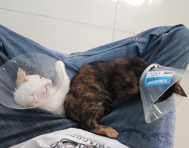 – สี่สมที่บ้าน ไม่ติดเชื้อ ฉีดวัคซีน ยกเว้นสมหนึ่ง แยกตัวจากพีน้องสักระยะเพื่อคอยดูเผื่อผิดปรกติ โรคหัดแมว มาจากไหน? มาได้จากทุกที่ครับ ไวรัสอยู่ทุกหนทุกแห่ง เราคาดเดาที่มาลำบาก แตาระมัดระวังและป้องกันได้ ช่วงนี้ทั้งสมสองและสมสวยจะงดออกจากกรงมาวิ่งเล่นไปสักพัก พ่อทองมีไปเยี่ยมก็ต้องใส่ถุงมือ ก่อนและหลังกลับบ้านก็ต้องดูแลความสะอาดมากขึ้นไปอีก เพื่อให้มั่นใจว่าจะไม่เป็นพาหะพาเชื้อทั้งสองมาติดแมวอื่นครับ สำหรับแมวอื่นๆ ในบ้านดูแลอย่างดี ทั้งหมดเป็นปรกติครับ (รูปนี้ถ่ายทั้งคู่ด้วยกันตอนสาย ก่อนรู้ว่าสมสองติดหัดครับ)