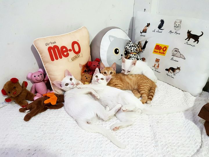มุมนอนของหนุ่ม ๆ ทั้งสี่สม มีหมอนจากมีโอให้มา ซึ่งน่ารักมากเลยไม่กล้าใช้ ยกให้แมวแทน มีตุ๊กตาอีกห้าหกตัวไว้ให้นอนกอด