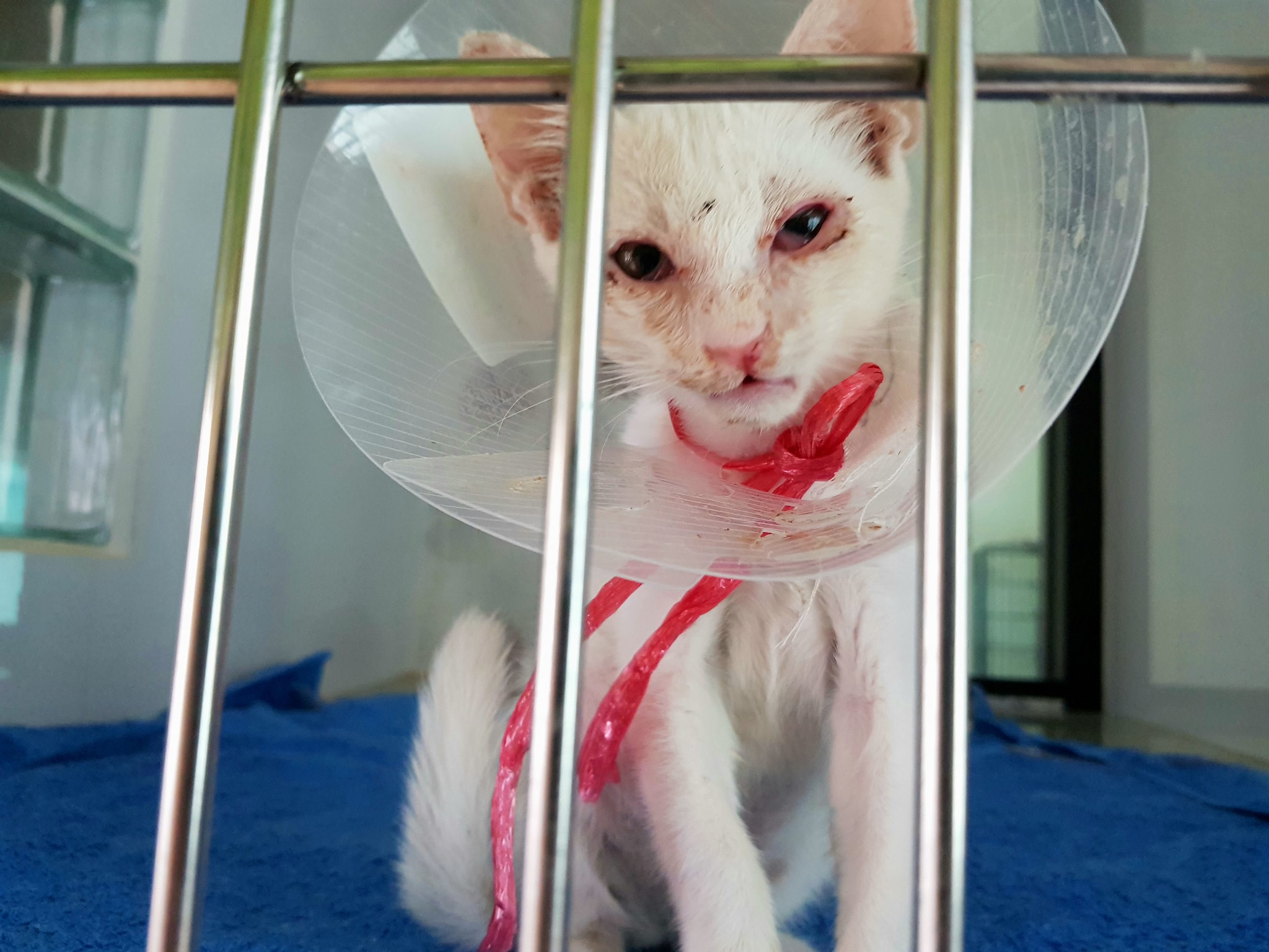 #อัปเดต แก๊งหกสมและทองมี #ทองมี เมื่อคืนคงรำคาญเลยทำคอลลาร์หลุด เวลาใส่คอลลาร์จะซึม แต่พอถอดออกก็จะร่าเริงตามปรกติ วันนี้พาหาหมอตามนัด แผลนั้นไม่มีปัญหาอะไร คุณหมอฉีดยา ทำความสะอาด ให้กลับบ้านดูแล ล้างแผลได้เอง มีนัดกันอีกทีอีกสามวันเพื่อติดตามผล #แก๊งหกสม โดยรวม อาการยังไม่ดีขึ้นจนเด่นชัด ยังมีหวัด มีน้ำมูก หน้าตายังเปรอะอยู่ ตายังอักเสบ มีสมส้มและสมสี่พอกินอาหารได้เอง ตัวอื่นยังต้องป้อนอาหารครับ ก็ต้องรักษากันต่อไปจนหาย คงจะอีกหลายวัน ทุก ๆ วัน พ่อทองมีก็ยังกังวลต่อไป เพราะเด็ก ๆ ยังตัวเล็ก คอยไปเยี่ยมวันละสองรอบ เพื่อให้หกสมมีกำลังใจกัน #สมศรี เธอคงยังมองเห็นว่าพ่อก็พยายามทำตามที่บอก คือจะดูแลลูก ๆ ให้ดีที่สุด แมวอื่น ๆ ในบ้านสบายดีกันครับ เหนื่อยแต่สู้ต่อไปครับ ขอบคุณครับ
