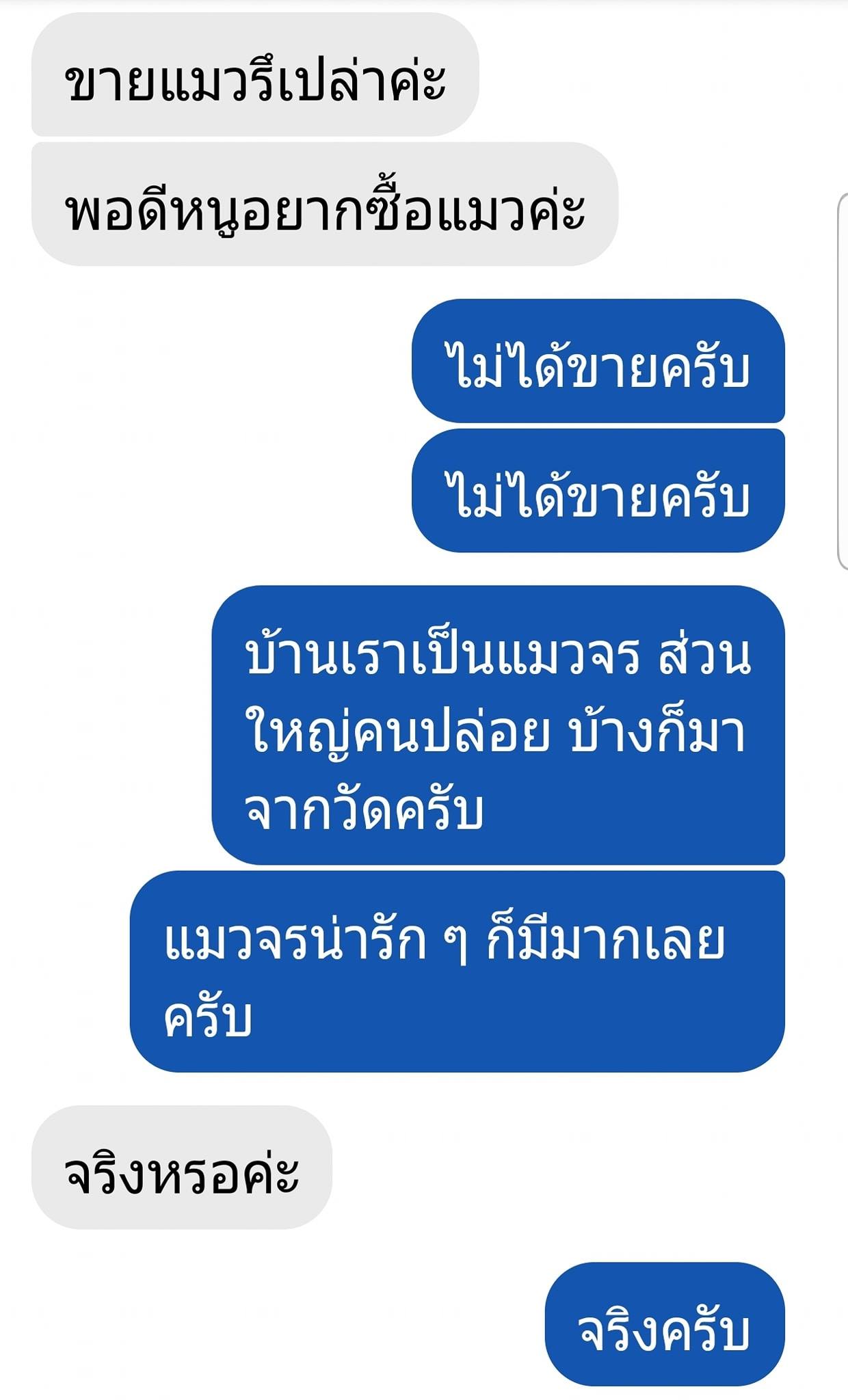 มีเด็กน้อยคนหนึ่งทักมา ขออนุญาตนำข้อความมาให้อ่านกันครับ น้องคงเห็นลูกแมวแล้วอยา โพสต์เมื่อ 15 ก.พ. 2020 - 09:11น. ใน โพสต์ทั่วไป 0 คอมเมนต์ มีเด็กน้อยคนหนึ่งทักมา ขออนุญาตนำข้อความมาให้อ่านกันครับ น้องคงเห็นลูกแมวแล้วอยากเลี้ยงบ้าง โดยเฉพาะ #สมเปรอะ เริ่มฮ๊อตกับเขาบ้างแล้วนะครับ แมวบ้านทองมีส่วนใหญ่เป็นแมวจร โดนปล่อยทิ้ง และแมววัดครับ มีรุ่นหลัง ๆ ที่เผลอมาออกลูกที่บ้านเราบ้าง มีแมวตัวเดียวเท่านั้นที่ซื้อมาคือ แม่มณี ซึ่งรู้สึกว่าผิดอยู่ไม่น้อยครับ การซื้อเป็นการเพิ่มวงจรการซื้อขายไปในตัว วันที่ไปเจอมณี วันนั้นไปเดินตลาดนัดในตัวเมือง อากาศอบอ้าว ร้อน แออัด มณีคงโดนตากแดดตากลมตั้งแต่เล็ก เมื่อเดินผ่านกรง มณียื่นมือมาแตะหน้าอก รับรู้ได้ว่าเธอขอความเห็นใจ เลยตกหลุมพราง ได้เธอมาอยู่ด้วยกันถึงวันนี้ครับ แมวที่โดนเขาเพาะพันธุ์ขาย ส่วนใหญ่ชีวิตพวกเขาจะโหดร้ายมากกว่าแมวจรด้วยซ้ำครับ ถ้าเล่าคงยาวเลย ไม่รวมส่วนน้อยที่เลี้ยงขายและดูแลดีนะครับ ห้ามดรามา ทองมีทำเพจนี้ด้วยเป้าหมายหลักคือ อยากให้คนหันมารักและดูแลแมว แมวทุกตัวในโลกน่ารักเหมือนกันหมด อยากให้แมวจรเหลือน้อยที่สุด หากมีสิ่งดีดีอะไรที่ยังมีกำลังทำได้ก็จะทำครับ หันมาเลี้ยงแมวกันเถอะครับ เด็ก ๆ อยู่กับแมวกับหมา จิตใจก็จะอ่อนโยน มีความเมตตา ข้อดีมีมากมายครับ “แมวฟรียังมีในโลก” ค่าใช้จ่ายถูกกว่าซื้อของเล่นเยอะเลยครับ มีความสุขในวันหยุดทุกท่านครับ ดูโพสต์ในเฟซบุ๊กShare พิมพ์ 0 Likes