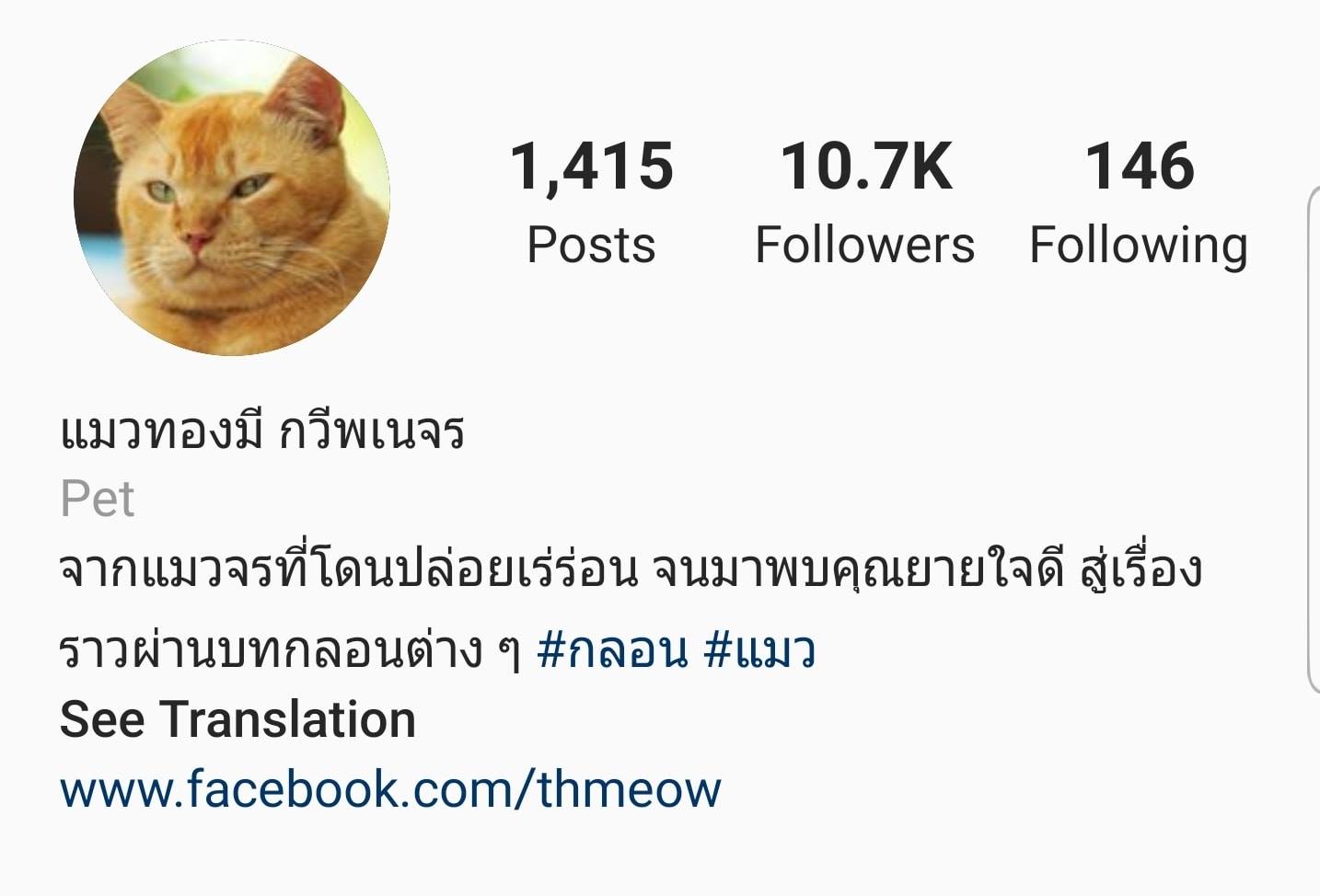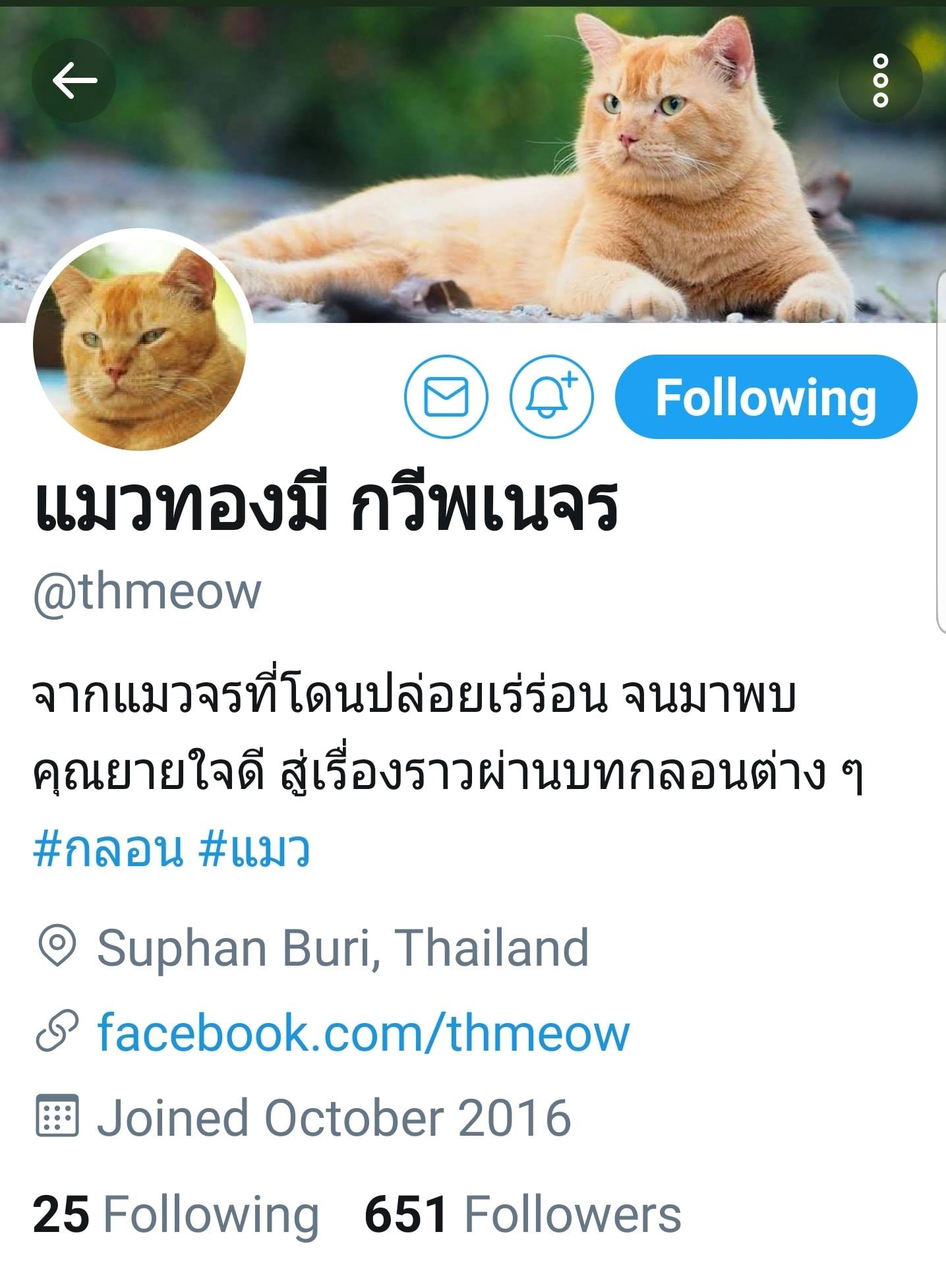 เพจ แมวทองมี กวีพเนจร เรามี Instagram และ Twitter ด้วยนะครับ เนื้อหาเหมือนในเพจ
