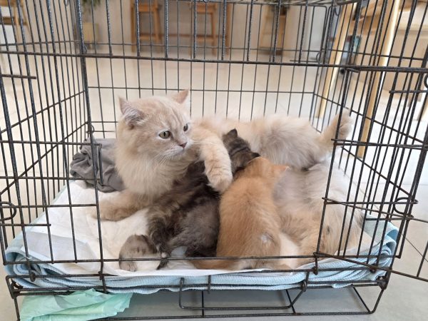 เด็ก ๆ เพิ่งตื่นหลังกินนมและหลับกันไปเมื่อตอนสาย ส่วนแม่มะนาวออกไปนอนเล่นนอกกรง